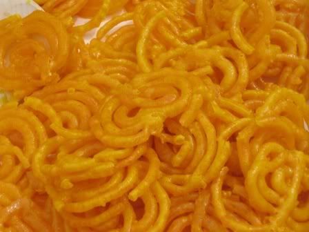 Jalebis are bright orange or yellow in colour, but are also available in white.